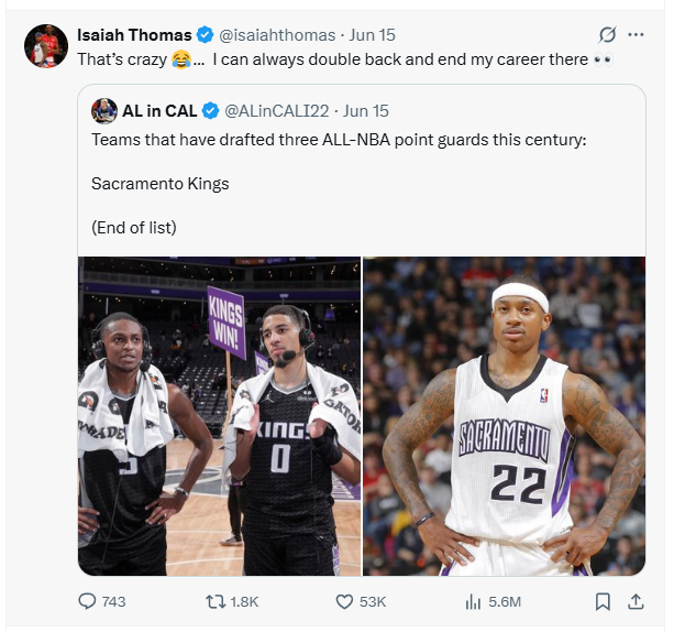 雷速体育6月16日讯 近日,美媒AL in CAL发文:“本世纪唯一选秀培养出三位全明星控卫的球队,国王队(福克斯、哈利伯顿和小托马斯)。”