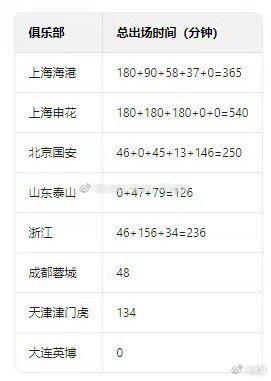 文章最后,杨翼附上了国足球员出场时间的对比图。他说自己并不特别赞同列举各家俱乐部球员出场时间对比这个方法,因为在国家队永远是一个整体,出场时间多少都是主教练根据战术要求来做主的,目的都是国家队打出最好的表现,取得最好的成绩。但是现在突然有一种,申花球员都要故意少踢、不踢东亚杯比赛的阴谋论,希望能通过发这张图以正视听。
